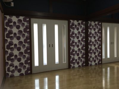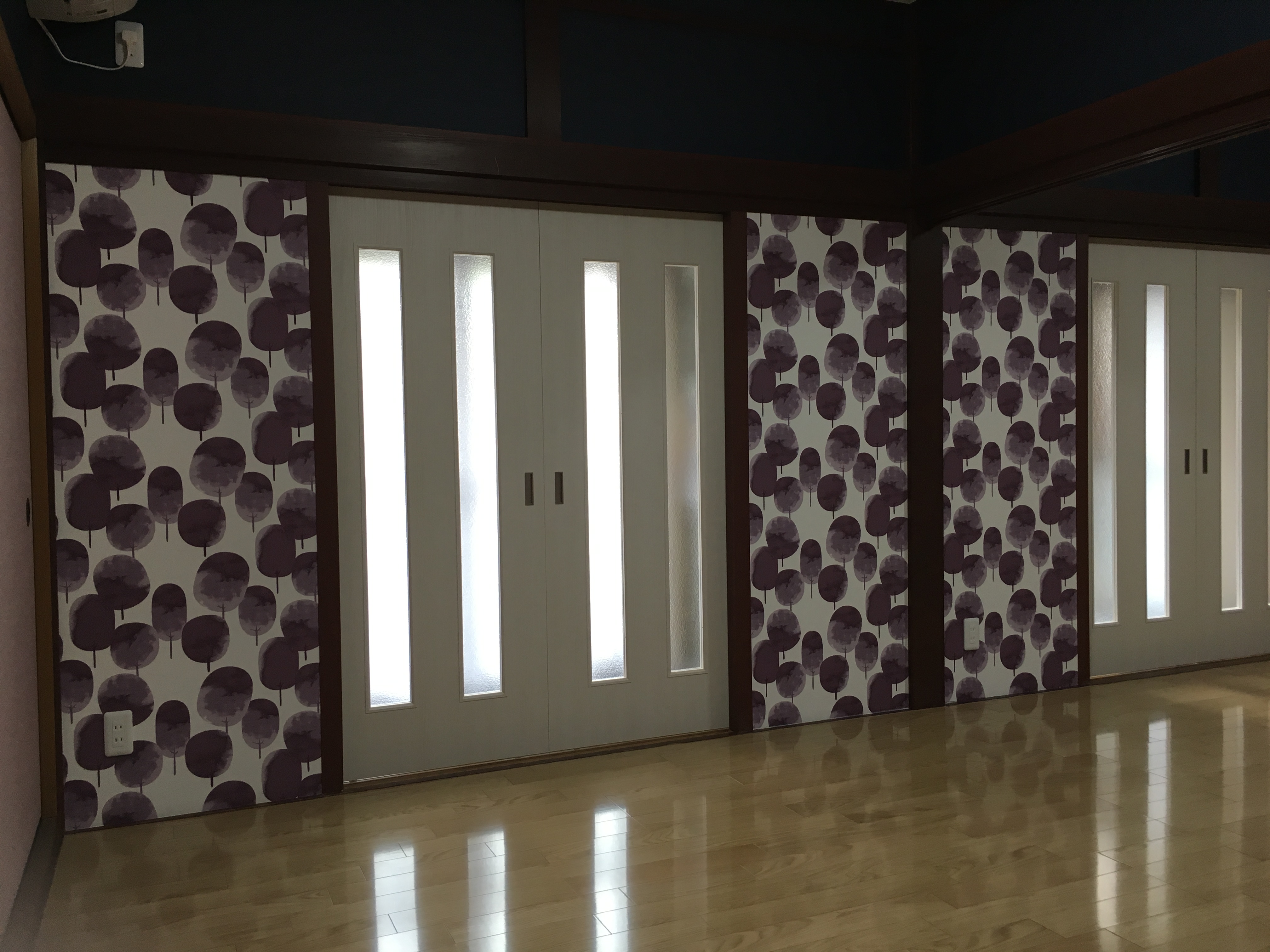 一部に壁を作り、建具を引分けにすることで、壁を作っていきます。