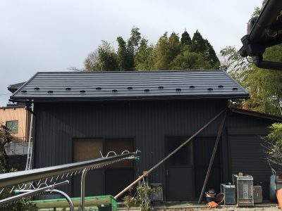 小屋の屋根が古くなってしまったので板金で上貼りをさせていただきました。