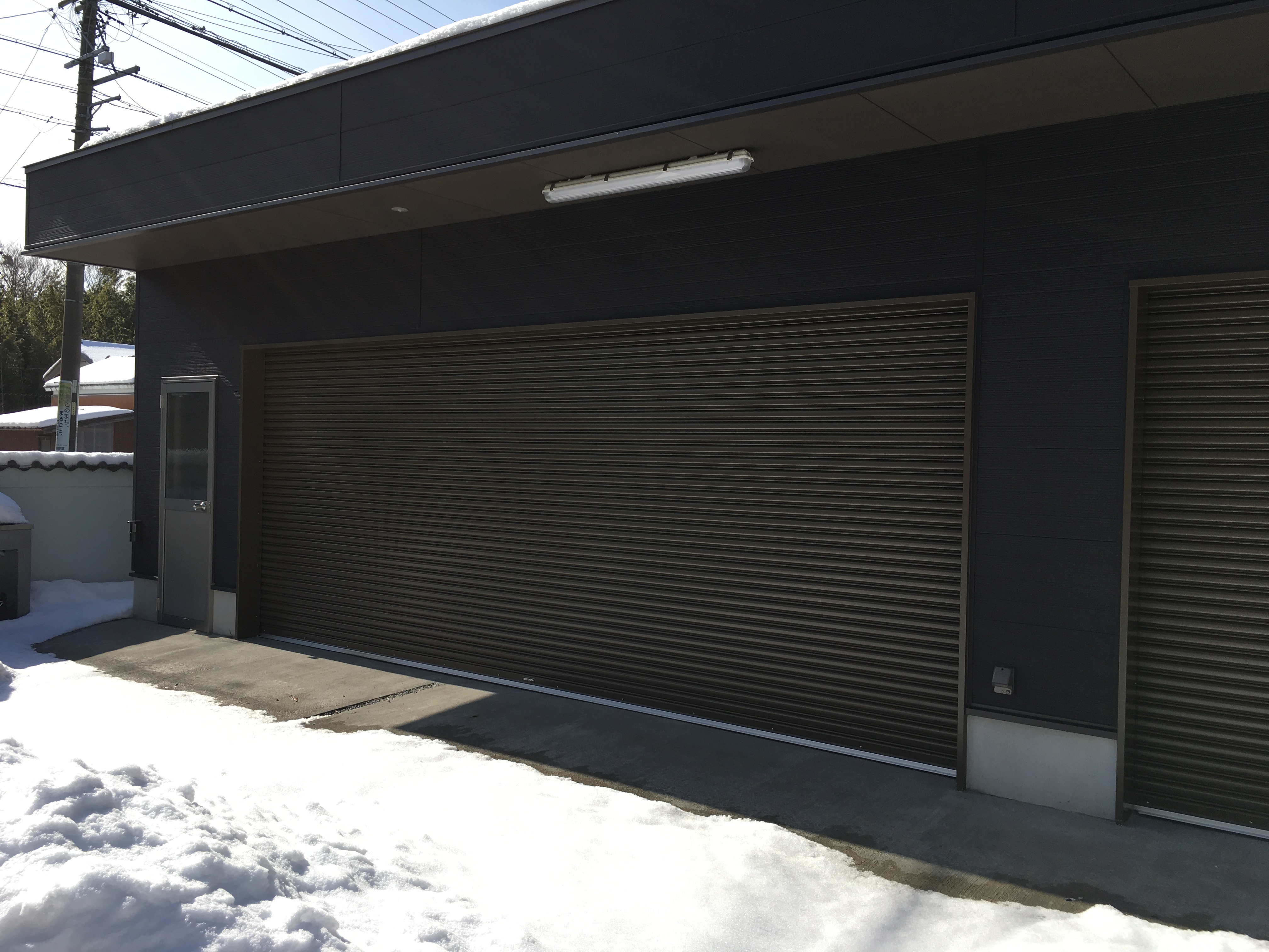 大開口の車2台分電動シャッターと、1台分電動シャッターで3台分の車を入れられ、