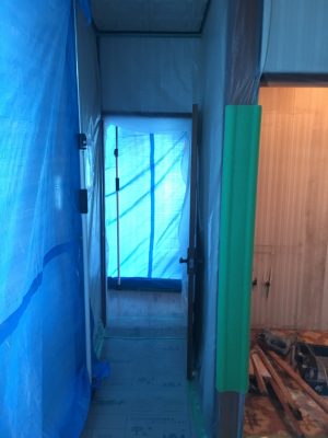 解体箇所以外の部屋(廊下)は、特に念入りに養生します。