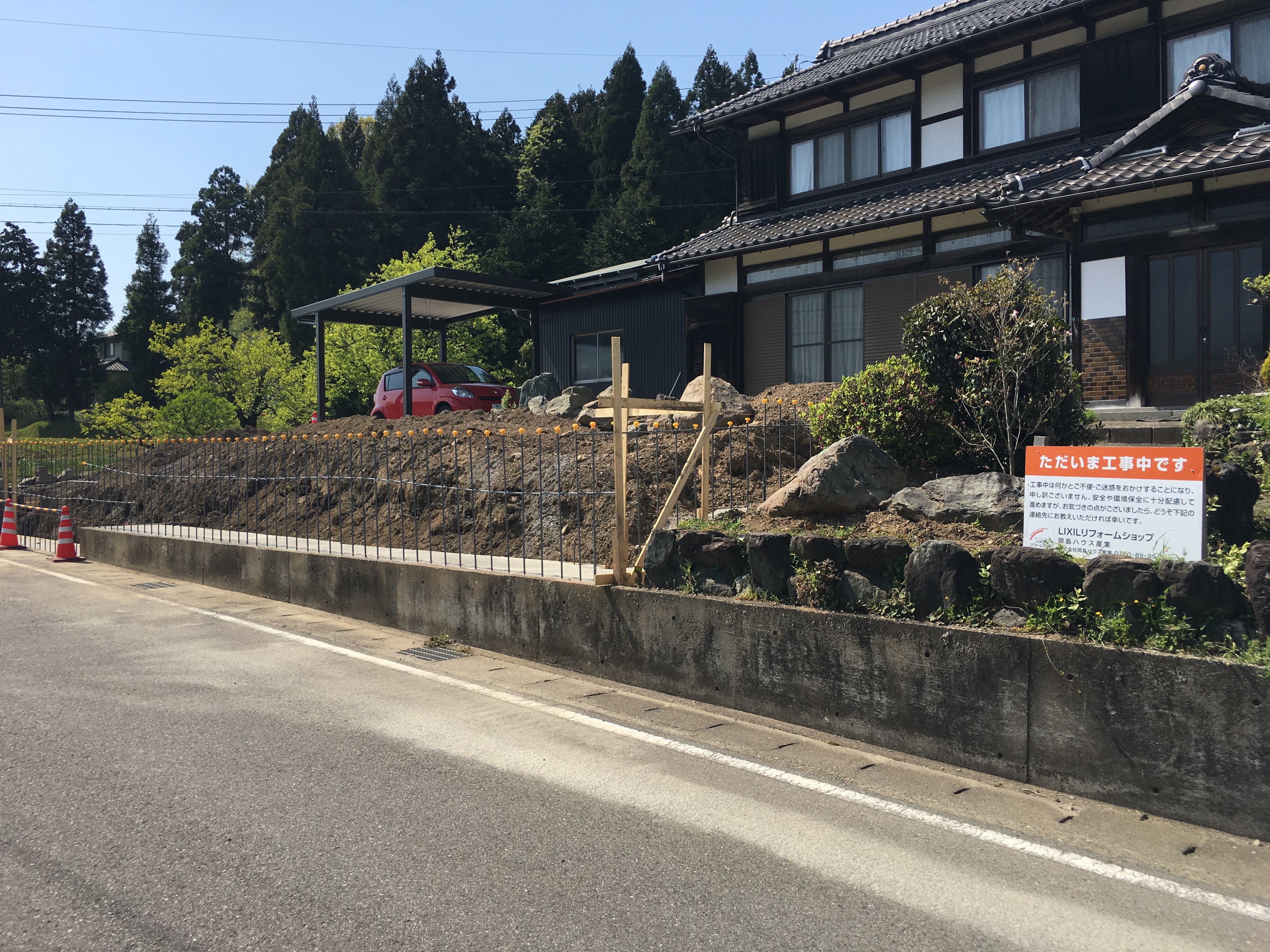 内側はコンクリート仕上げにフェンスと植栽で周りを囲み完成です。