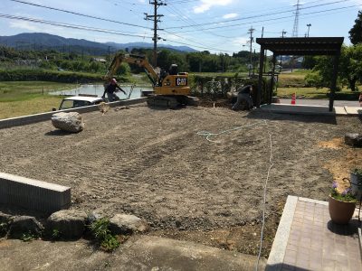 ブロック塀の中は平らになり、最終的にはぐるりとフェンスが取付されます。