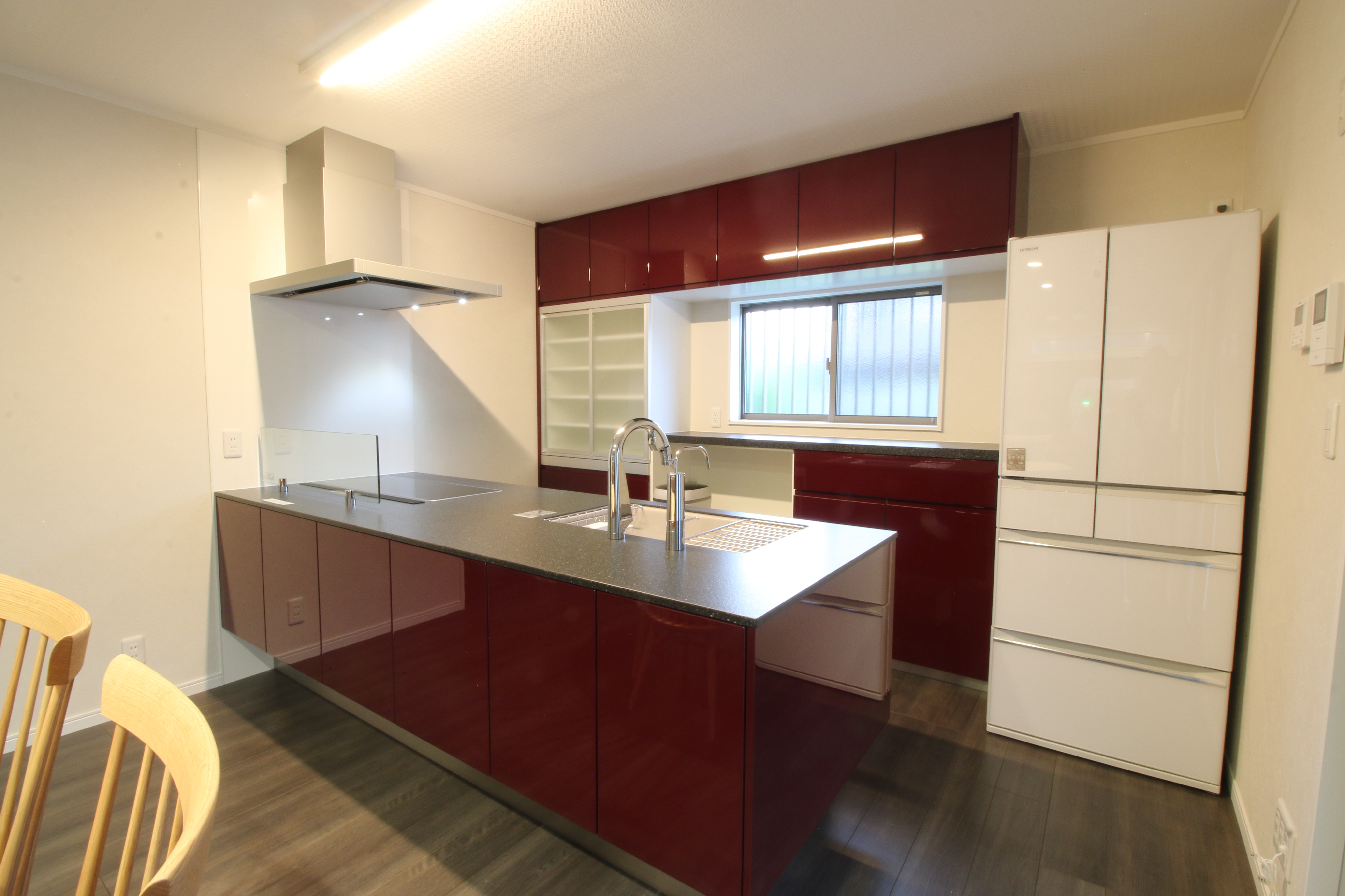 キッチンは食欲を掻き立てる色と称される赤系です。