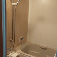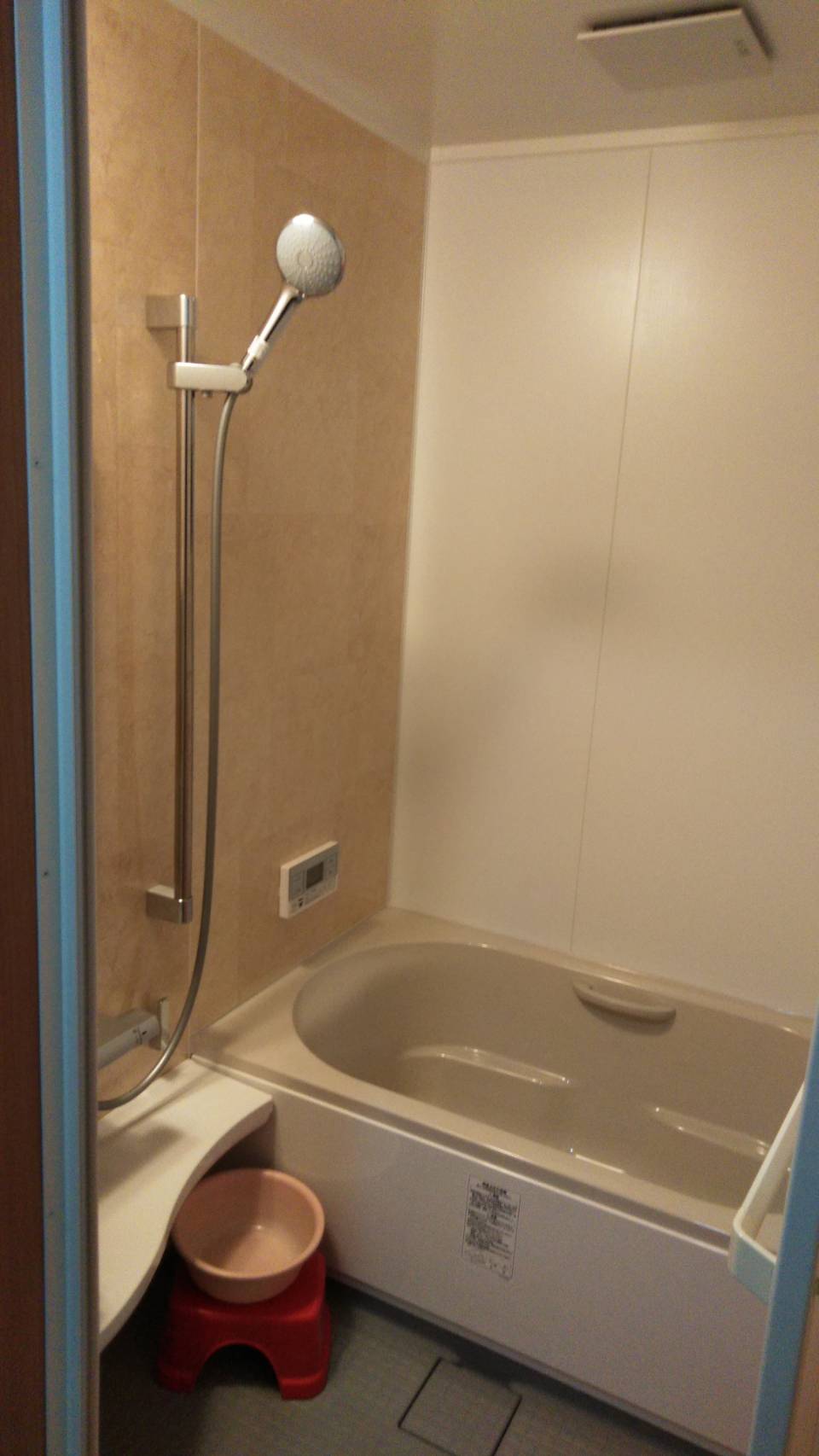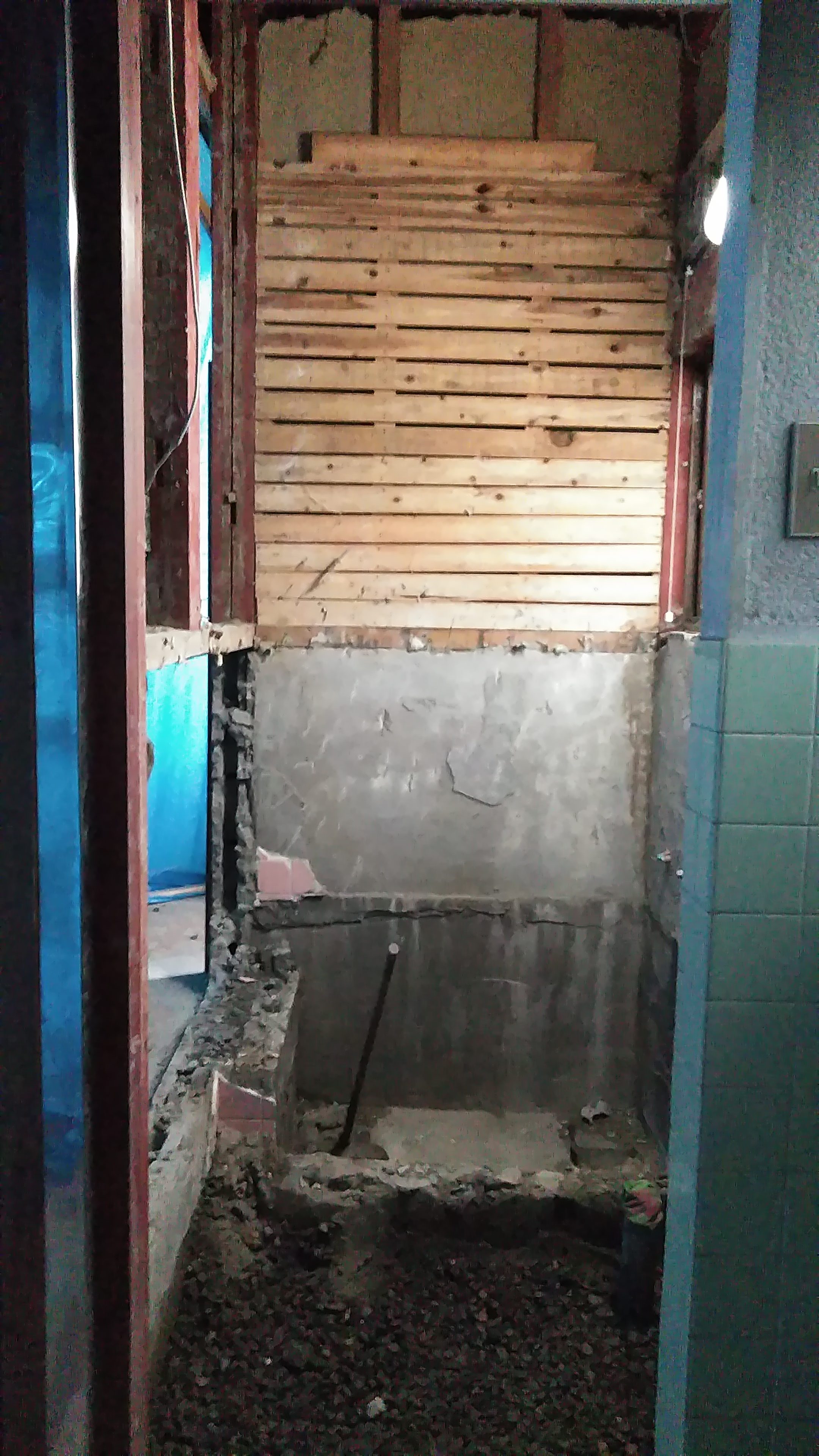 風呂解体後。昔ながらのタイル貼りの浴室でした。