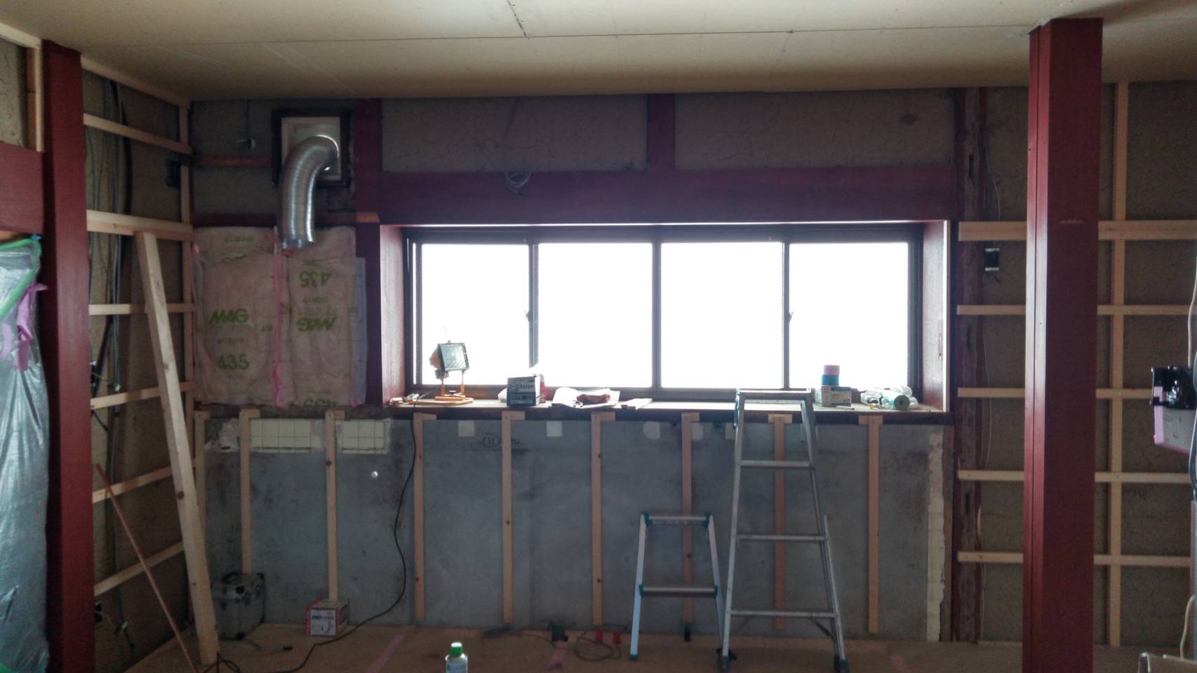 キッチン解体後。既設の窓は利用し、造作工事へと入っていきます!