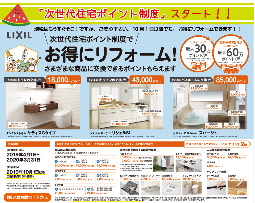 2019年、「次世代住宅ポイント制度」として、スタートします!!