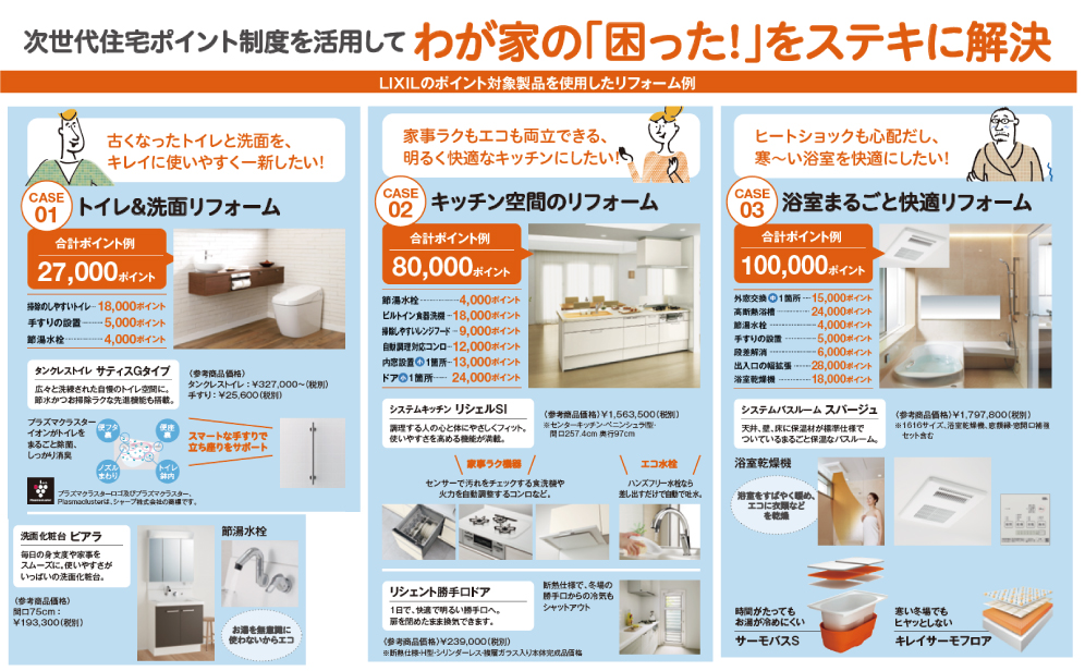 リフォーム事例ともらえるポイントをまとめたのが、下記になります。