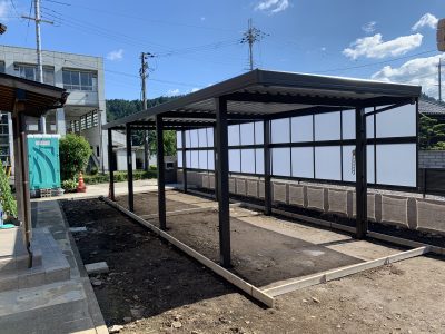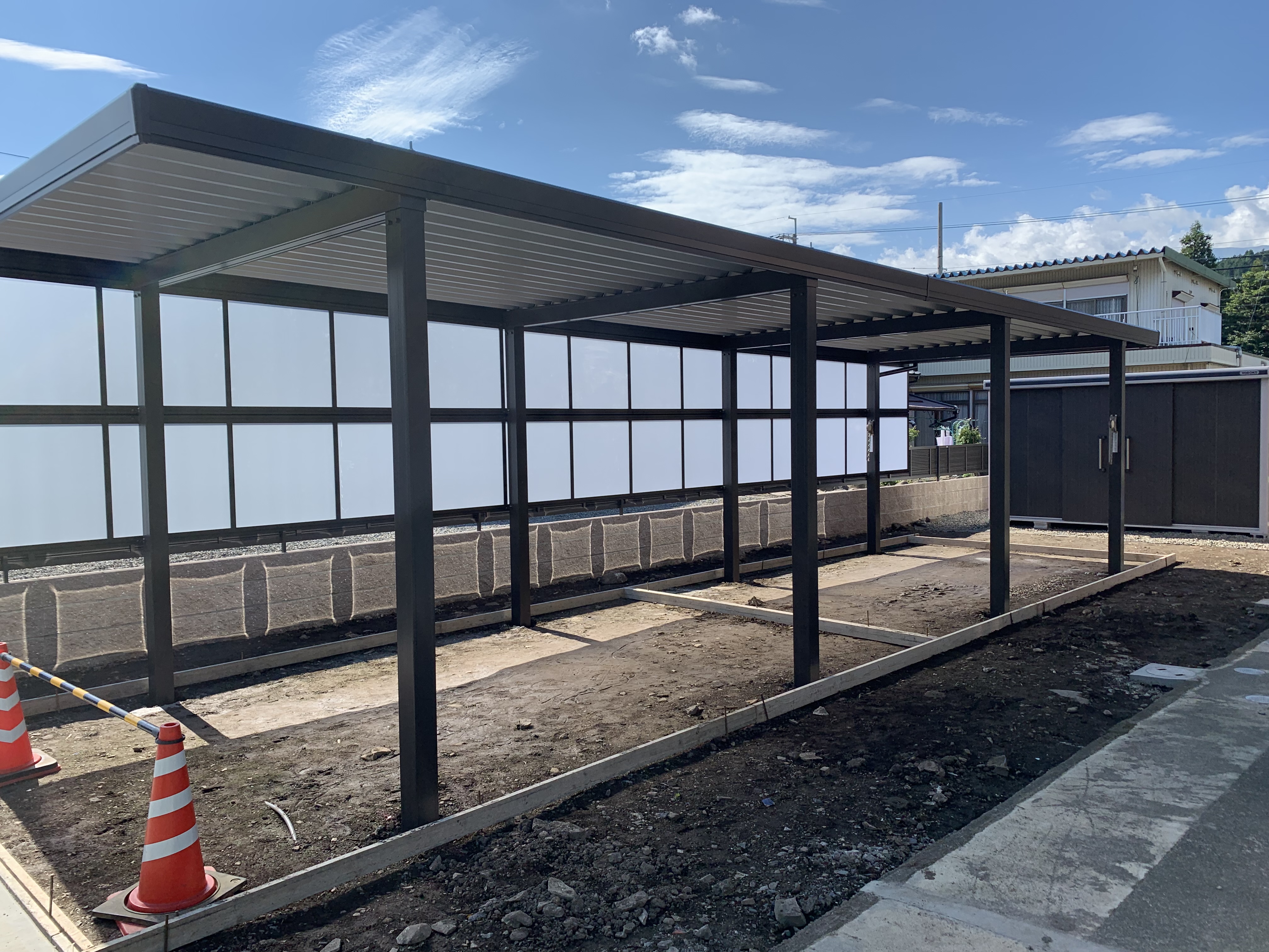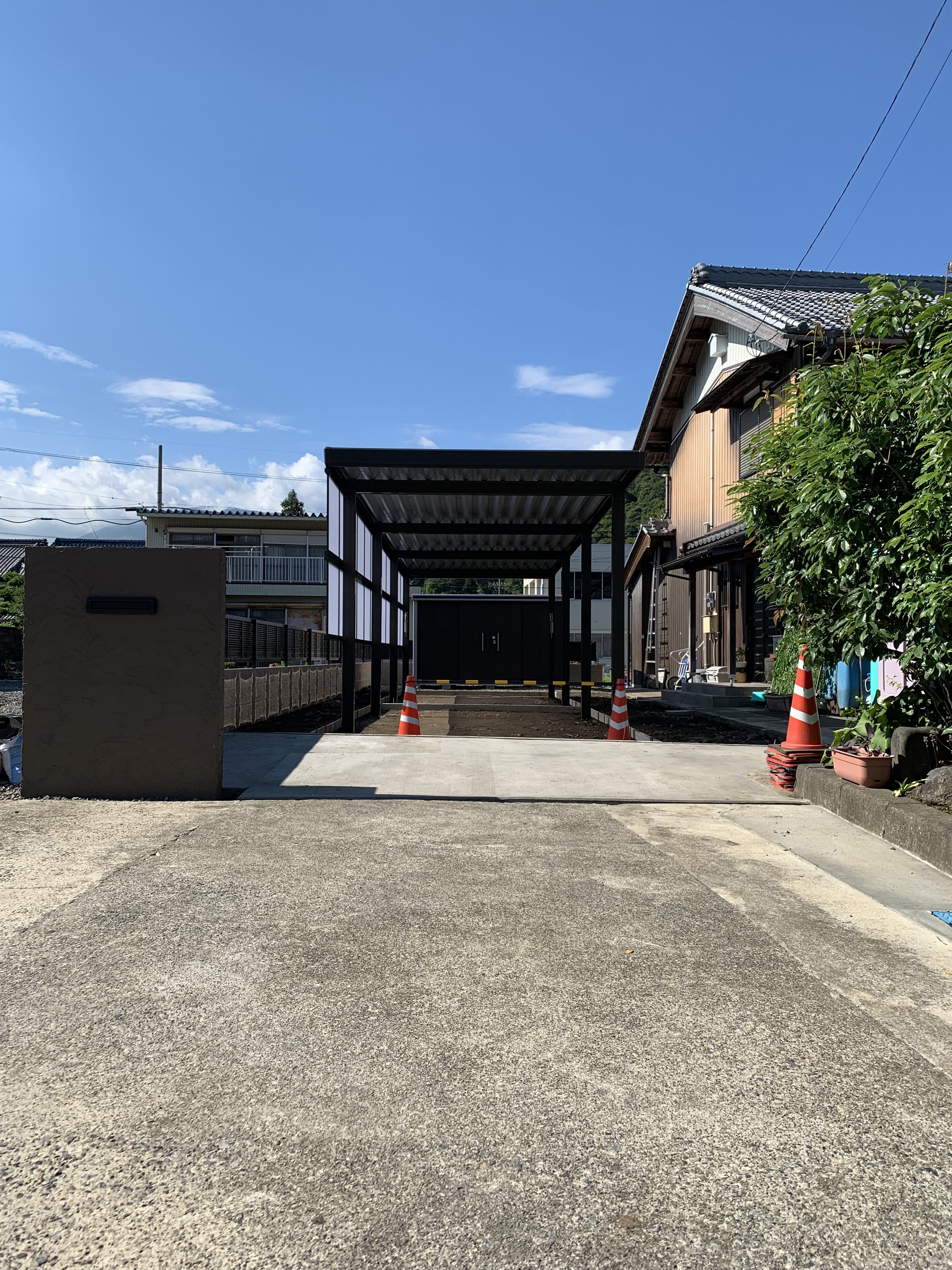 カーポートやフェンスの取付が終わりまして、完了に近づいています。