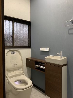 関ヶ原町で、トイレのリフォームと玄関に木製建具の取付をさせていただきました。