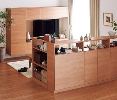 こちらは、リビングとダイニングとの間仕切りを兼ねた収納です。
