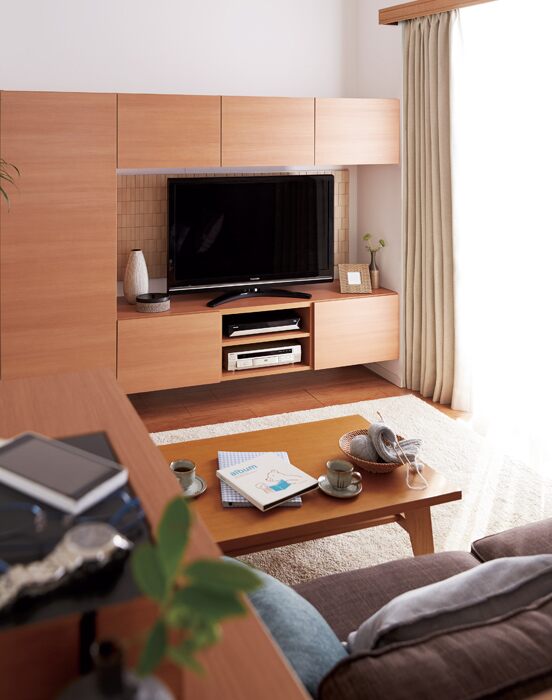 テレビボードまわりの壁だって、立派な収納スペースです。