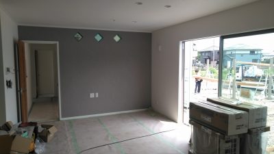 大工工事が完了してクロス工事とトイレや洗面台の器具付け工事が完了致しました。