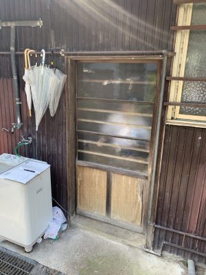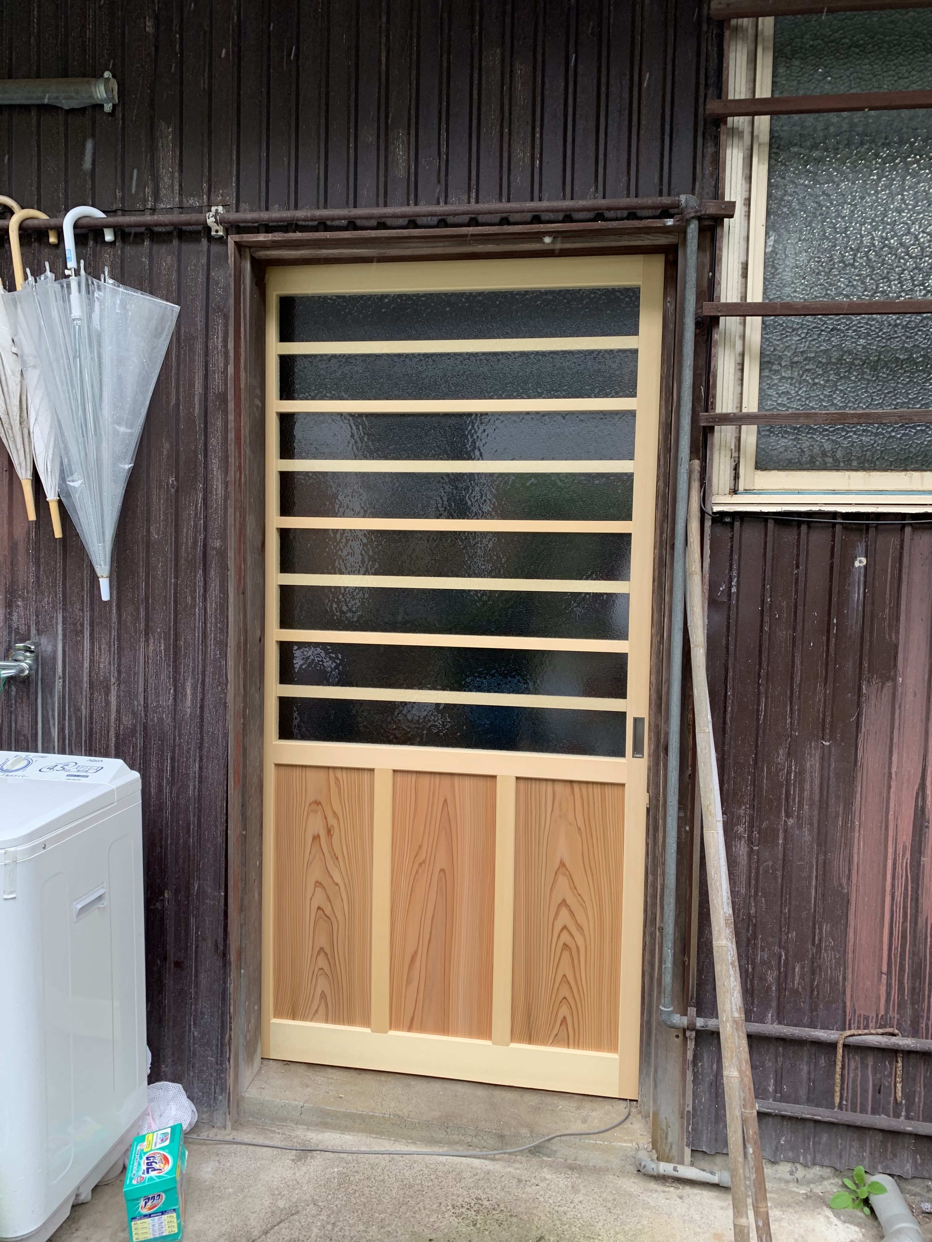 関ヶ原町で古くなった勝手口の引き戸を交換させていただきました。