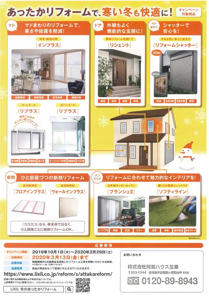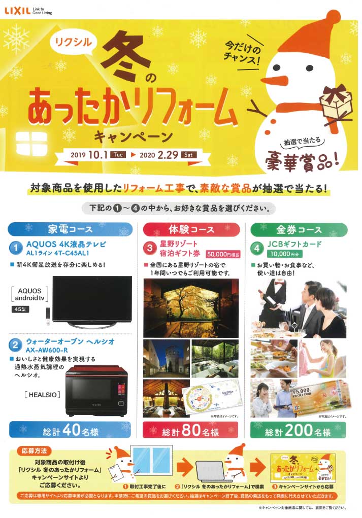 ただいま、「あったかリフォームキャンペーン」を実施中です。
