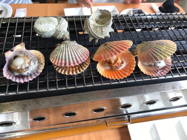 社員旅行二日目のお昼は、海の見える場所で、海鮮バーベキューでした。