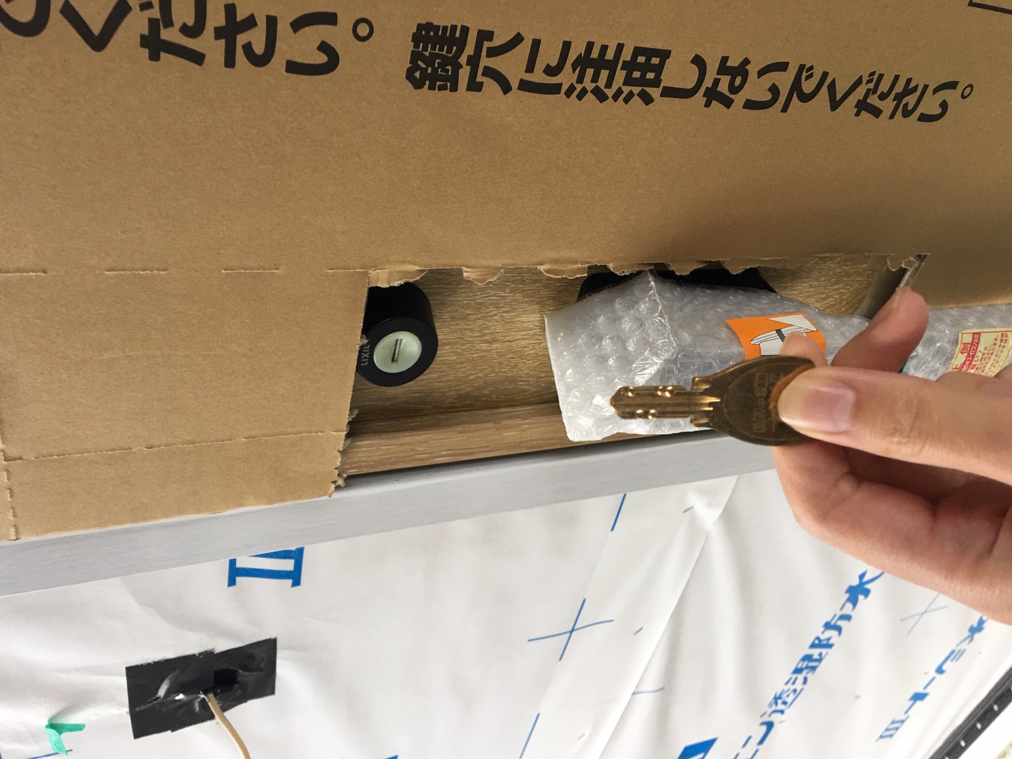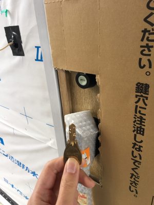 工事完了後に施主様用の新しいカギを鍵穴に入れると