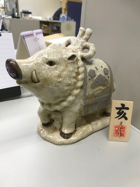 このイノシシの置物は、私の仕事デスクの上に一年間置かれていたのですが、