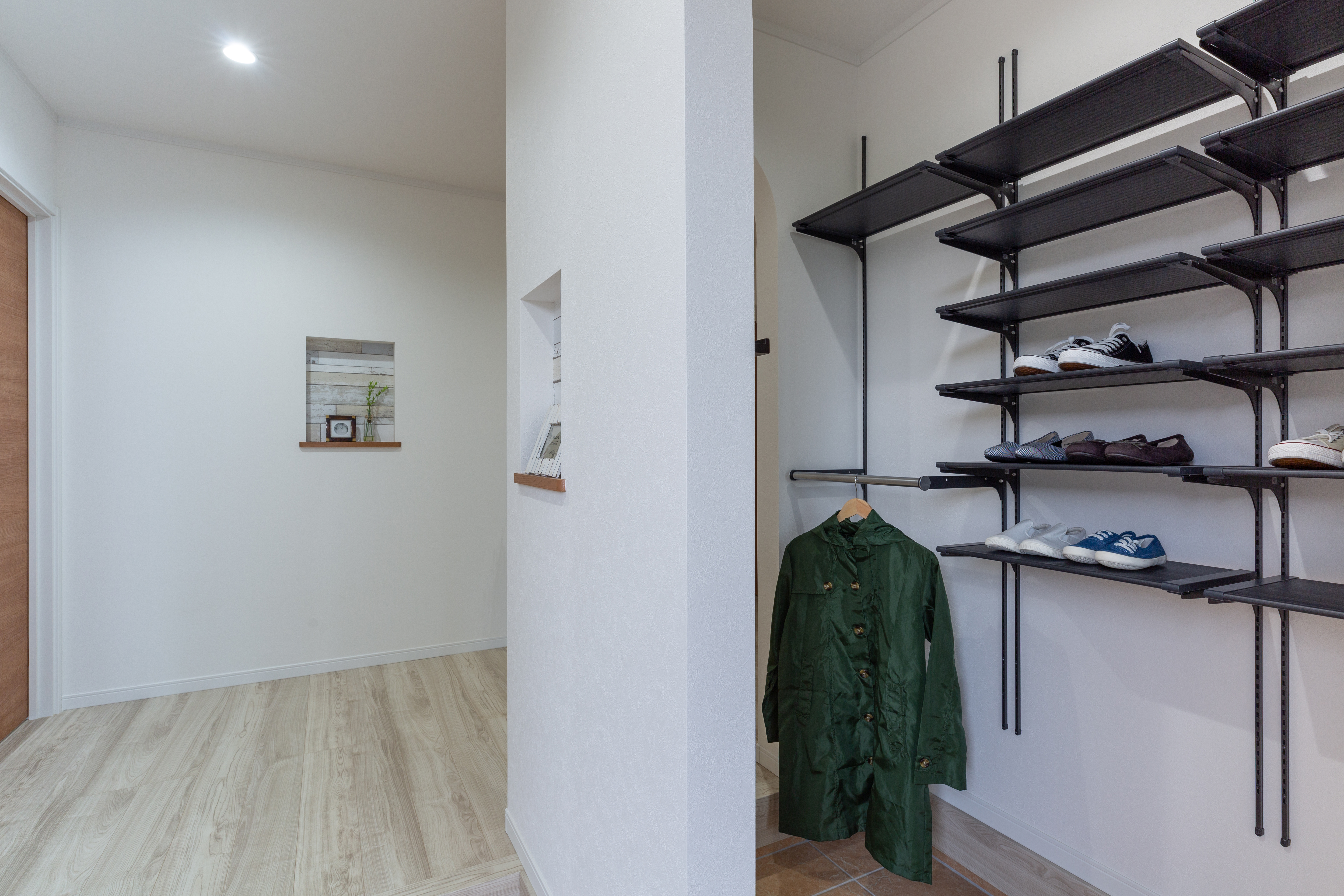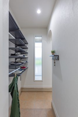 メイン玄関の隣に設けられた、靴置き場&物置スペースである「セカンド玄関」は、