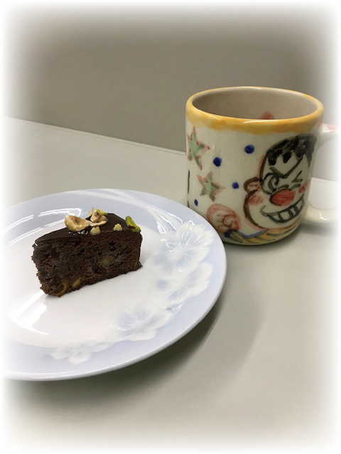 お昼休憩中に、少しずつ切り分けて、スタッフ同士で談話しながらいただきました。