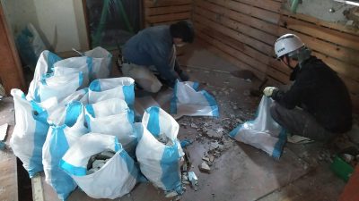 タイルや石膏ボード、木材などしっかり分別していきます。