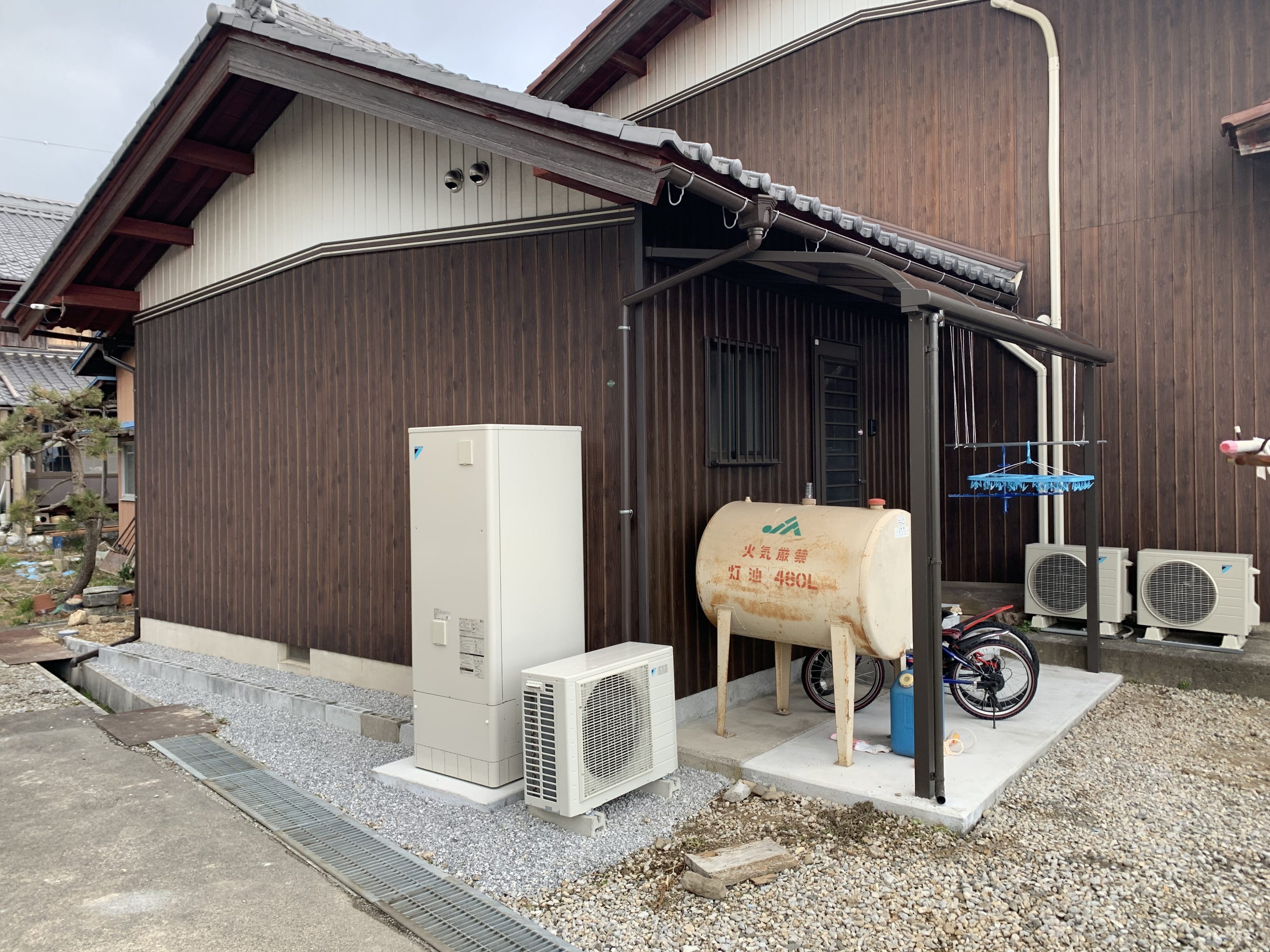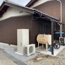 最終勝手口やエコキュート、テラスも設置しまして完成です。