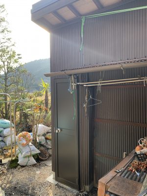 入り口にはドアを取付させていただき、側面は元々の外壁に合わせて貼りました。