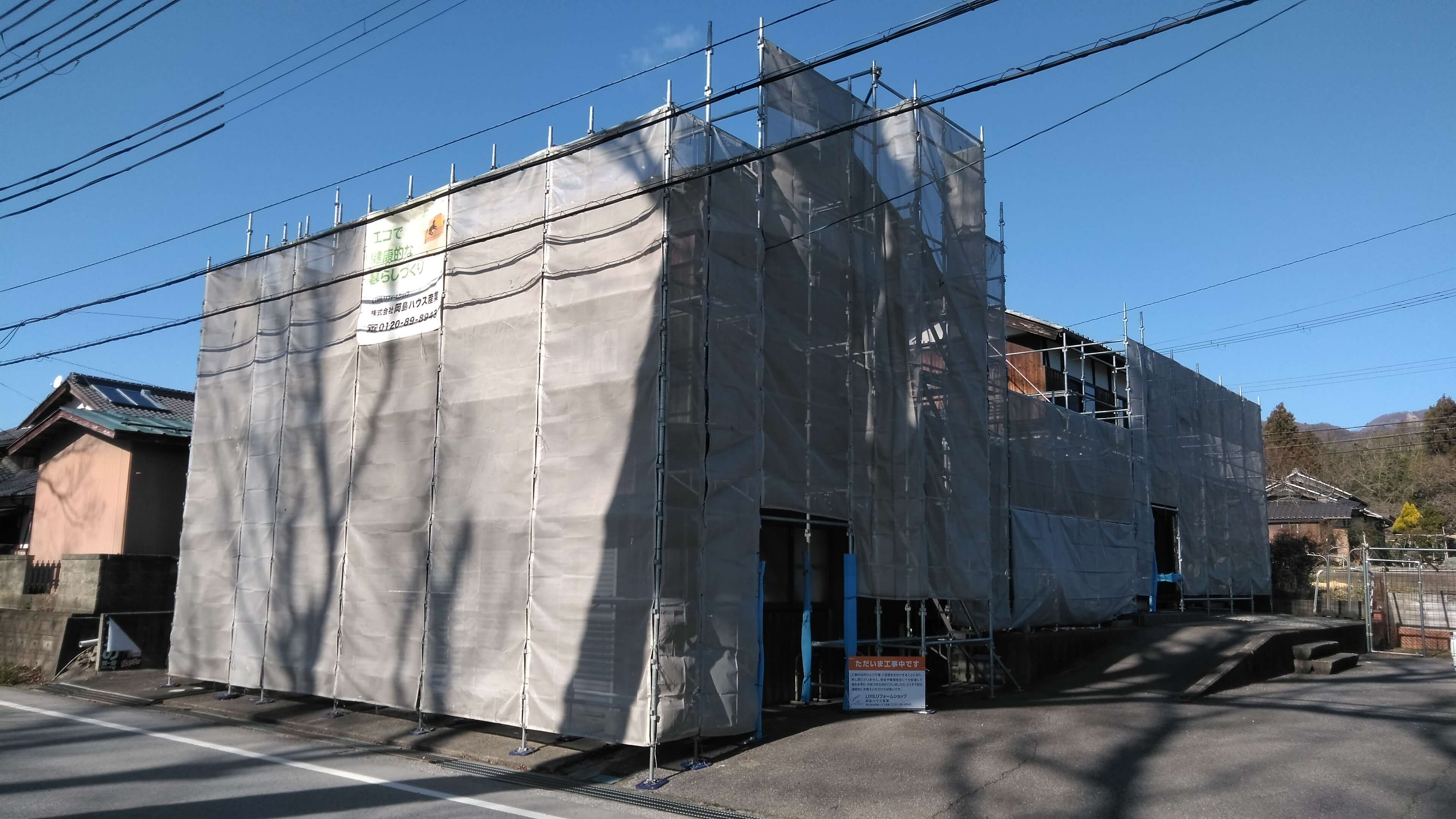 シートもしっかり張って足場設置完了です!