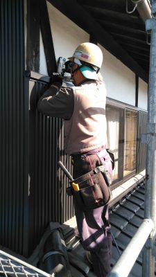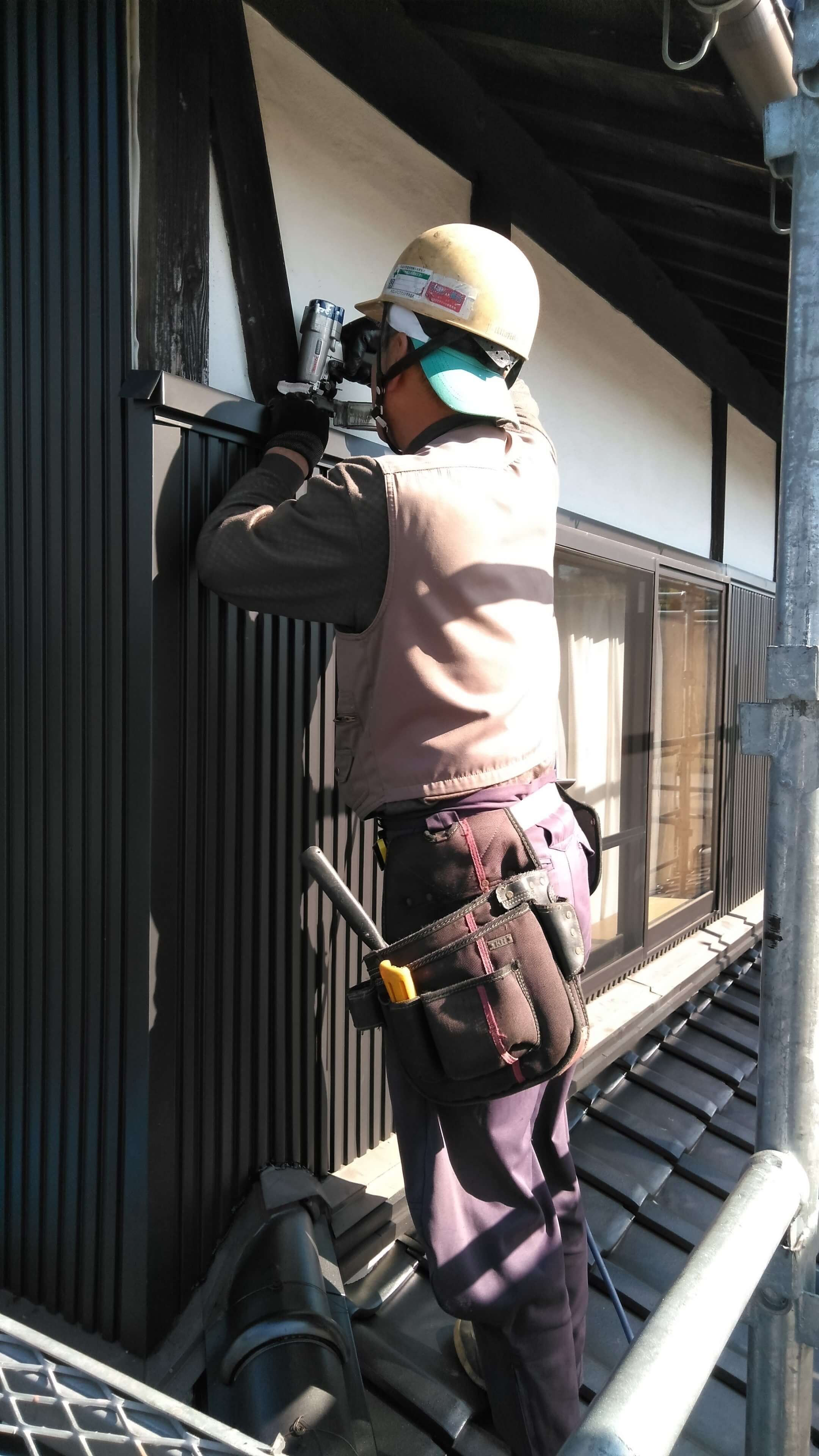 下地の胴縁に均等に釘を打っていき留めていきます!
