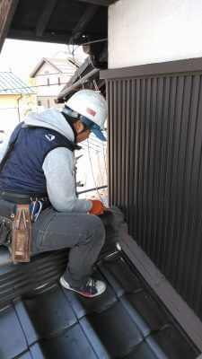 先日のブログでは防水紙工事まで完了していますので、いよいよ板金工事へと入ります。