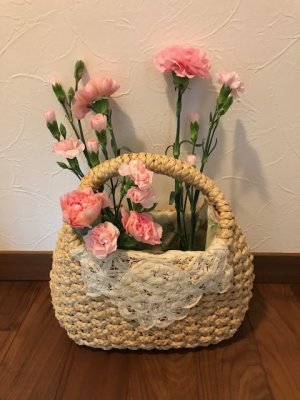 持ち歩くには可愛いすぎて持て余していたカゴバッグがありましたので、