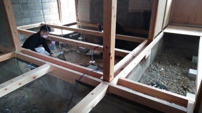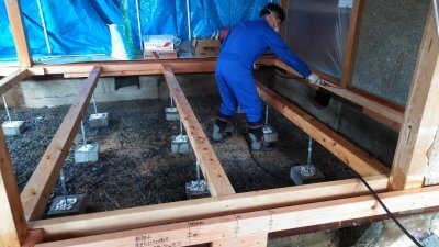 床組が完了すれば、防蟻工事をしてシロアリをシャットアウトしていきます!