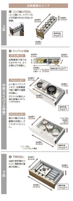 コンロには鍋やフライパンなどコンロで使うもの、など、