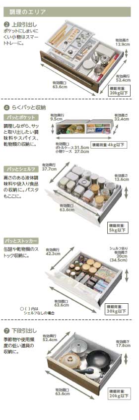 今まで、開き扉のキッチンだったお客様にとって、引き出しの収納に変わることで、
