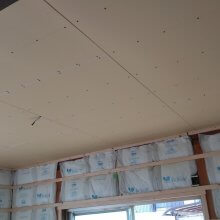 断熱材が入れ終われば、下地の石膏ボードを張っていきます。