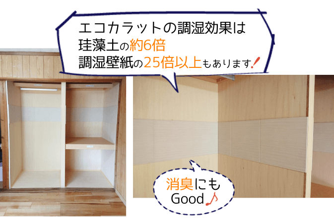 押し入れは湿気にお悩みでしたので、吸湿・消臭効果があるエコカラットを貼らせていただきました。