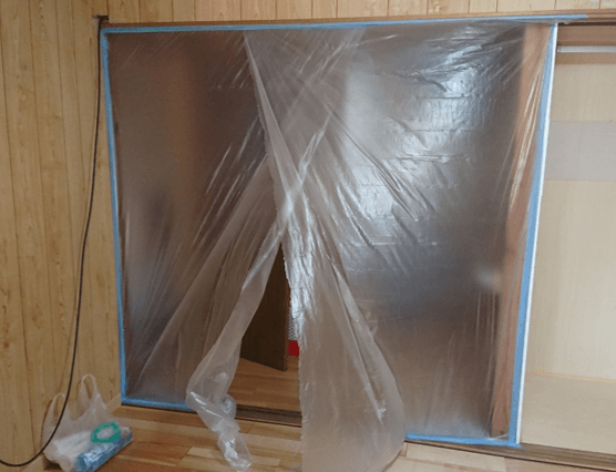 そこで、ビニールの養生シートを使うことで対応させていただきました。