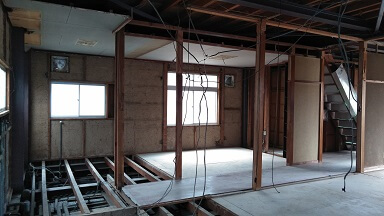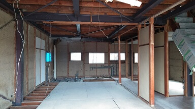 不要になった壁等がなくなり、構造上取れない柱等は残して、