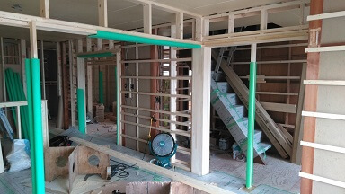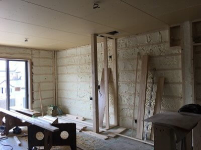 吹付断熱後の大工工事に入りました。