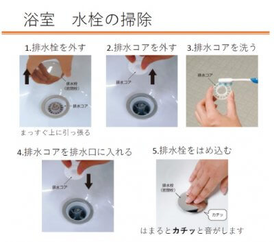 ポイントは、お手入れが終わった後、排水栓を上から押して
