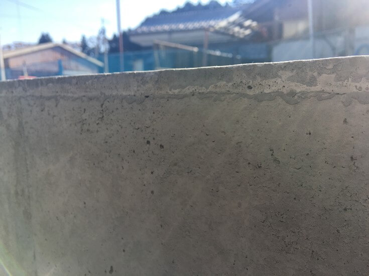 表面が滑らかになるよう、粘度の異なるコンクリートを分けて固めています。