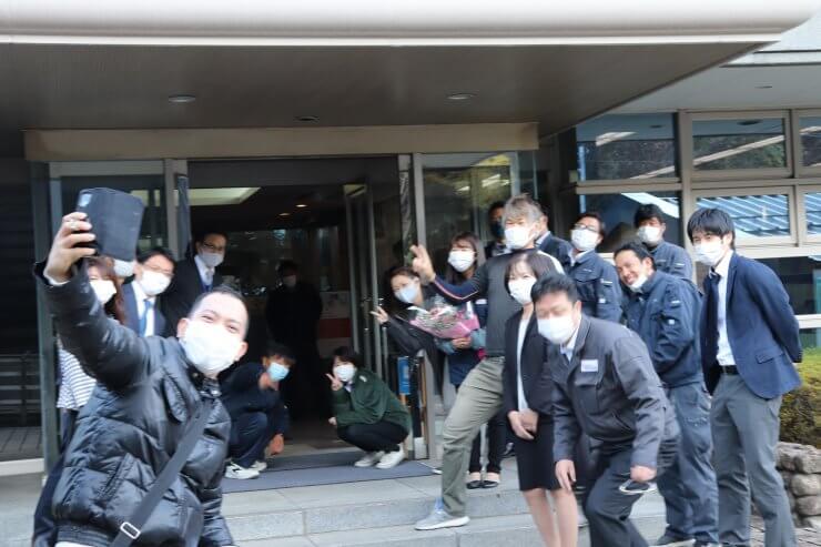 月に一度の全体朝礼の後にサプライズで写真撮影をしました。(^^)