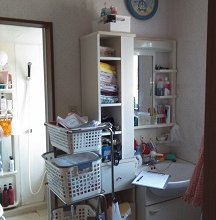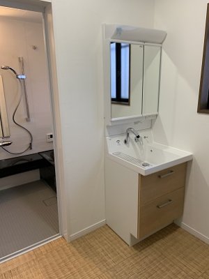 優しい木目調で清潔感と優しい雰囲気あふれる素敵な洗面室に変身しました。