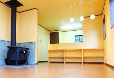 こちらS様邸は、洋風の明るいLDKの中心に、薪ストーブを設置しました。