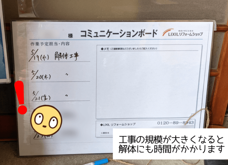 工事の範囲が広くなるほど、解体にも時間がかかります。
