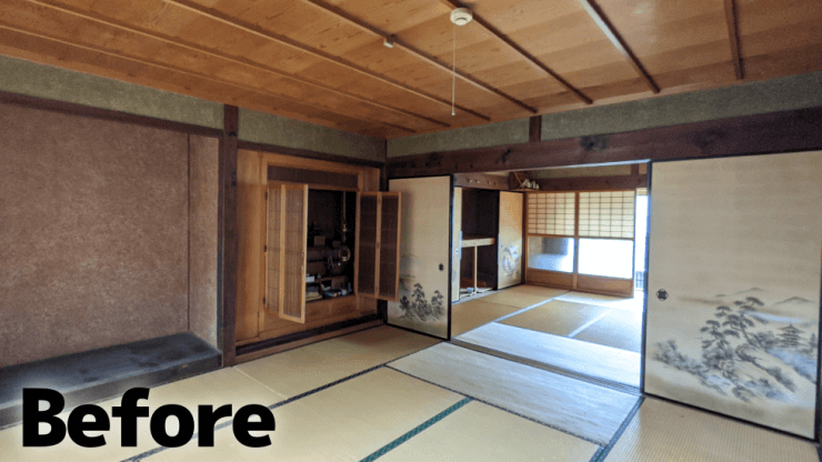 お馴染みの二間続きの和室と立派なお仏壇がどのように変身するのか...
