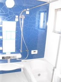 ブルーが映える素敵なバスルームは、ショールームにて選んで頂きました。