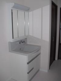 洗面化粧台の3面鏡は、実は開けると収納になっています。