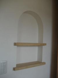 壁の厚みを利用したニッチ棚なので、邪魔することなく好きなものを飾れます。