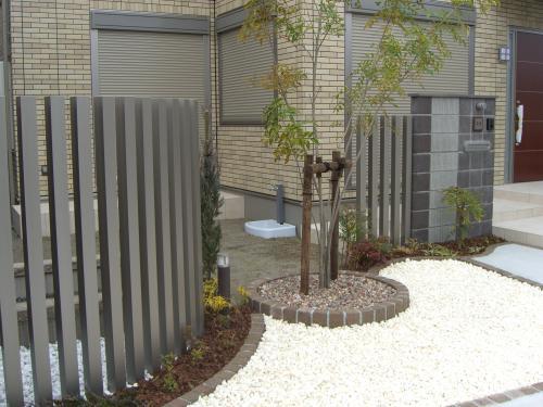 スタイリッシュガーデン ■ S様邸の外構工事を一式お任せ頂きました。少し和の雰囲気も感じさせるガーデン。グレーとブラウンを基調とした中に植栽の緑が映えます。
