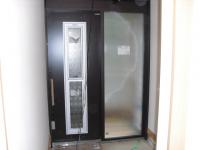 玄関を閉めたままでも外の風を取り入れられる、小窓付きの玄関引戸です。